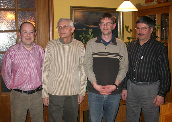 Bei den Neuwahlen wurde die Vorstandschaft einstimmig wieder gewählt. v.l.n.r.: OVV DJ5CL, Kassier DK6CQ, stellvertretender OVV DL4YAO, QSL-Manager DK4MO